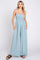 Light Blue Smocked Linen Wide Leg Jumpsuit