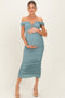 Light Olive Floral Smocked Waist Round Hem Maternity Midi Skirts