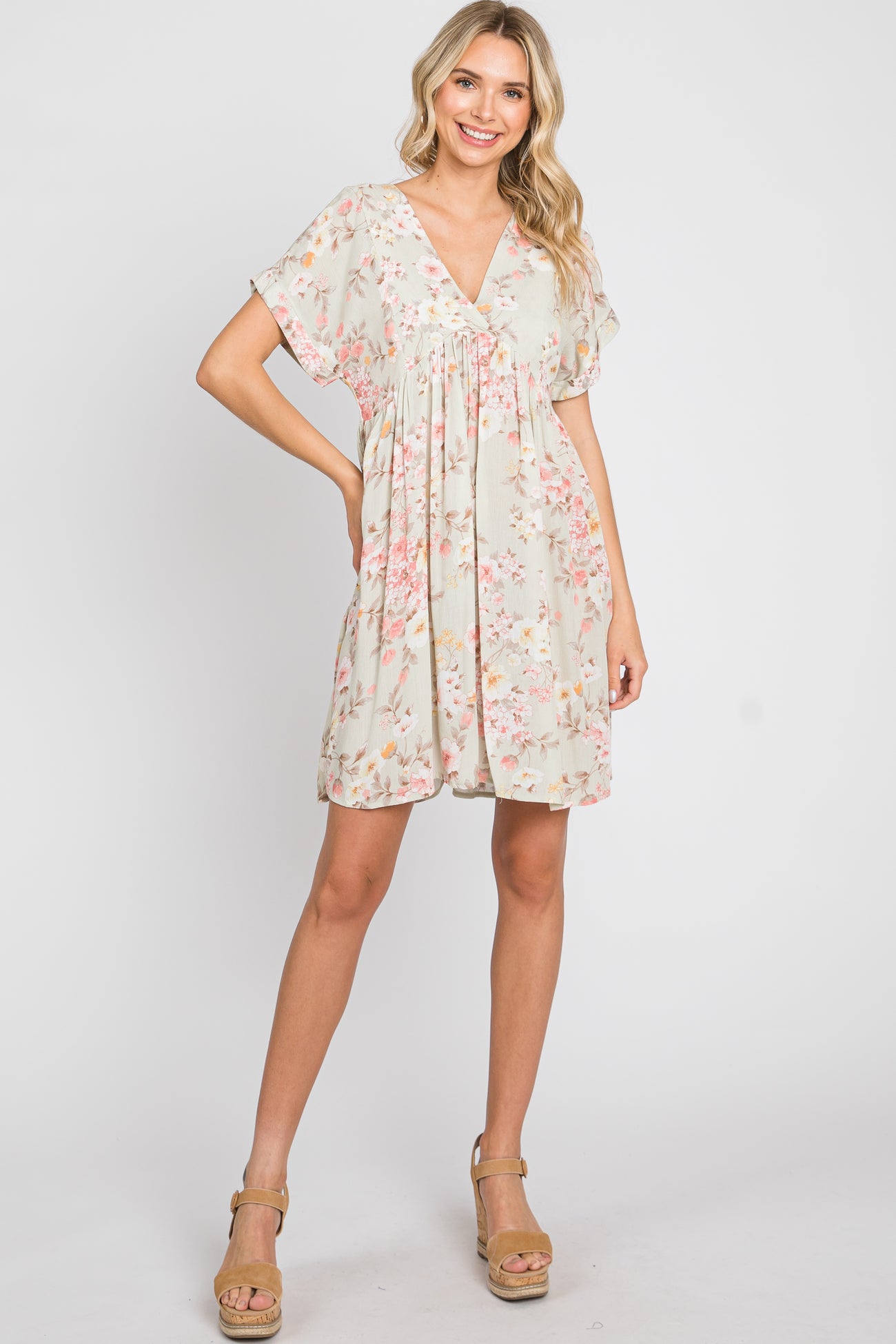 Details A floral print dress featuring a v-neckline, short dolman cuffed sleeves and an adjustable tie at the back. Content + Care