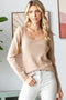 Light Olive Knit Contrast Trim Deep V-Neck Romper