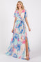 Light Olive Leaf Printed Drawstring Tiered Maxi Skirt