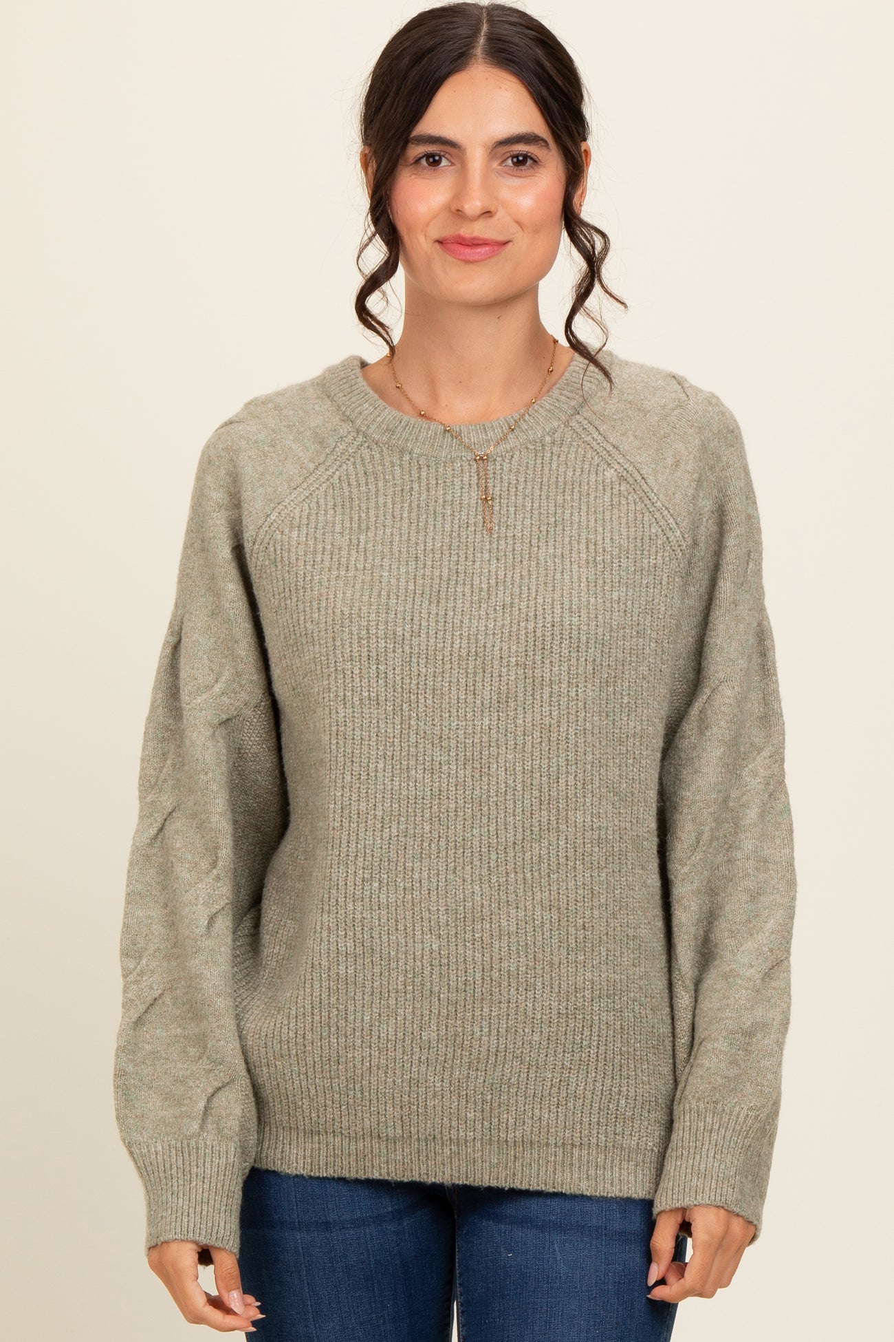 Light Olive Speckled Knit Contrast Sleeve Sweater