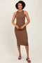 Light Olive Striped One Shoulder Side Slit Midi Dress