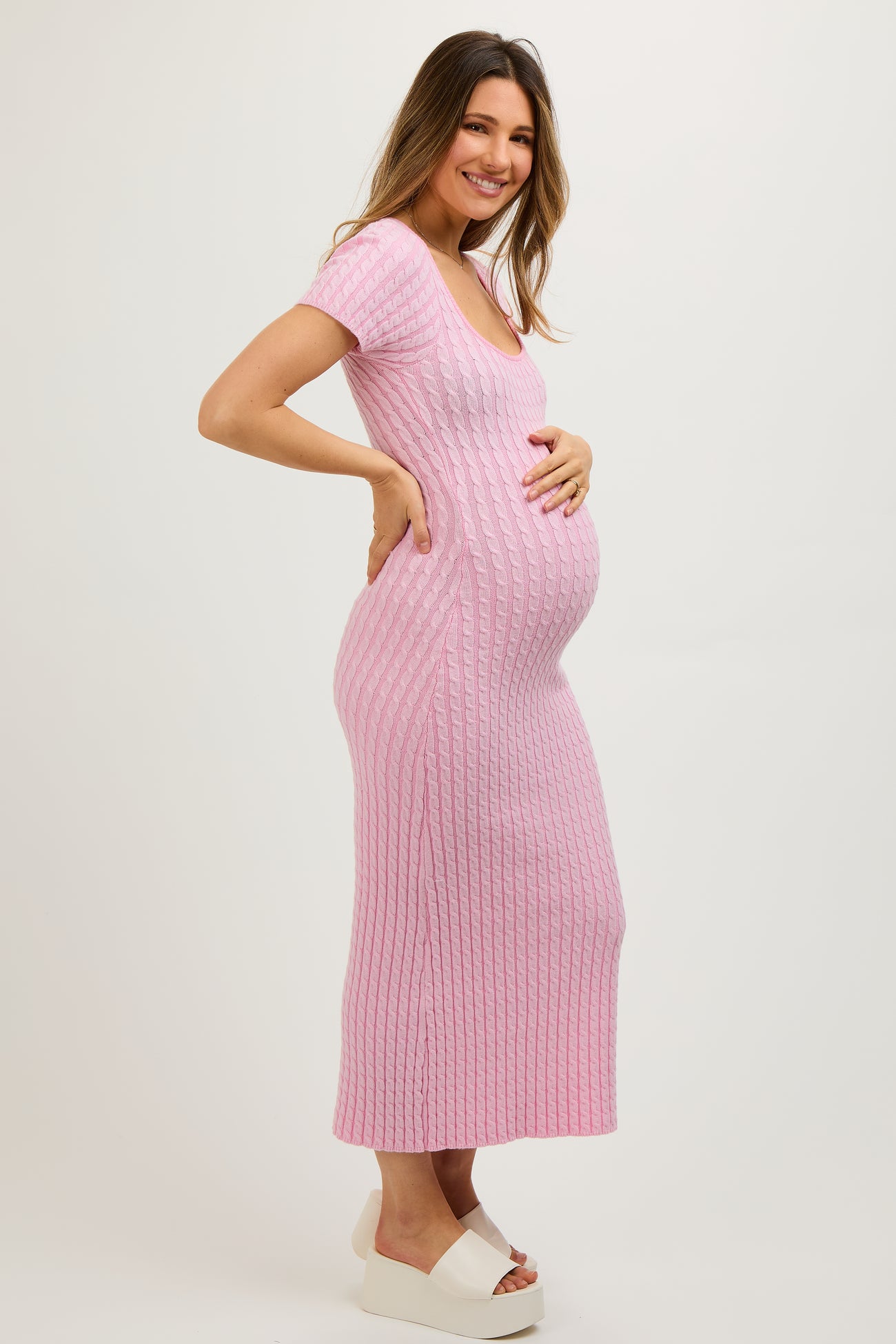 Light Pink Cable Knit Maternity Sweater Dress