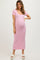 Details A maternity midi dress with a scoop neckline and short sleeves. Content + Care