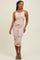 Light Pink Floral Mesh Overlay Twisted Strap Midi Dress