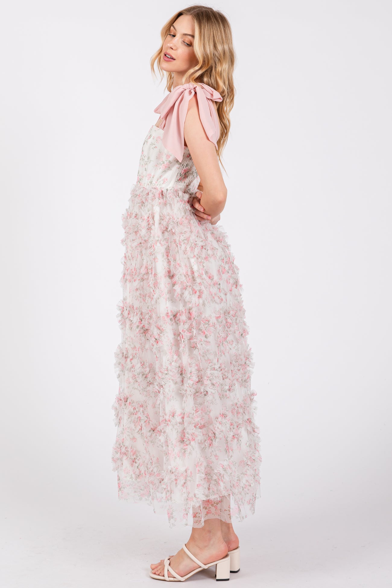 Light Pink Floral Ruffle Tiered Maxi Dress