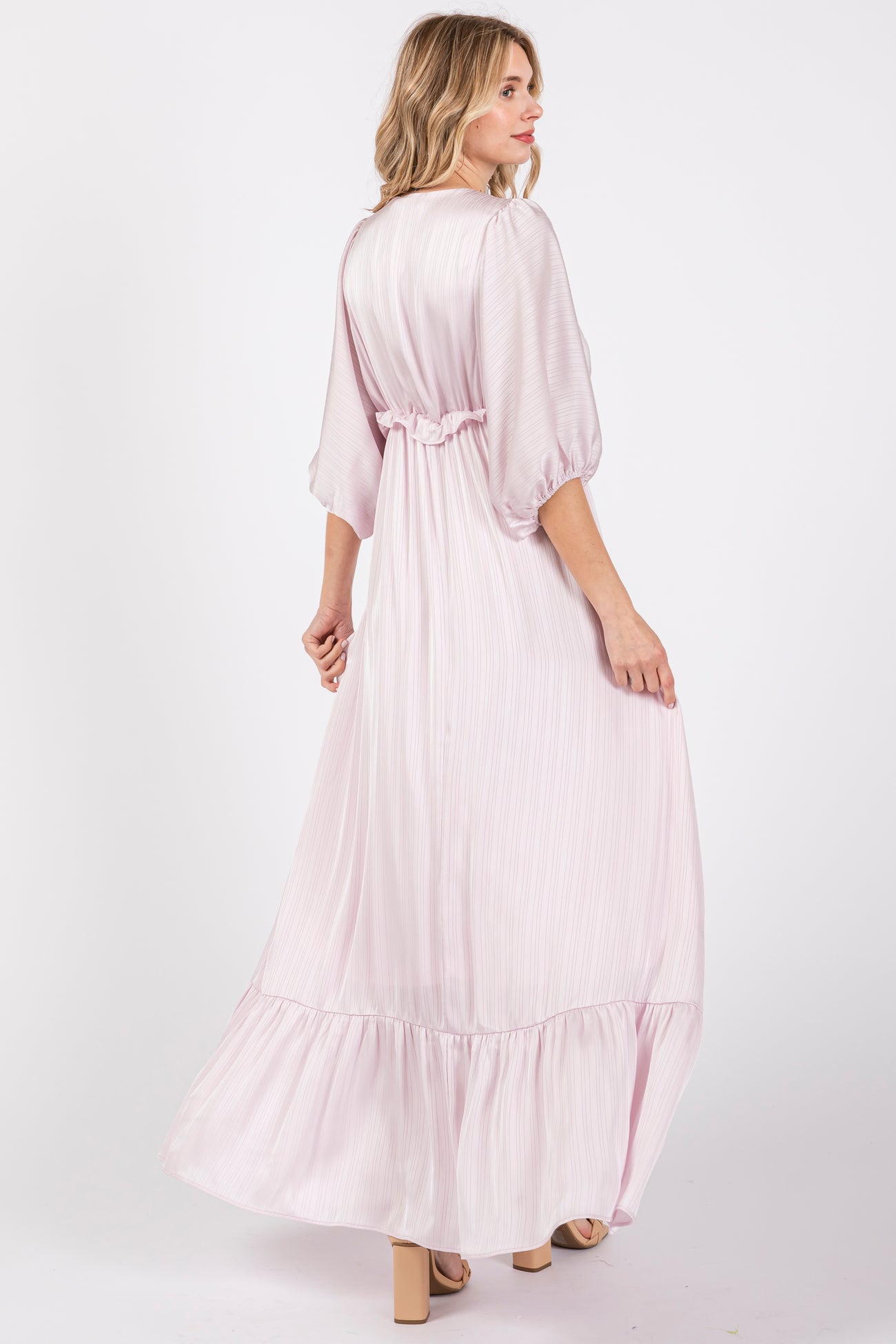 Details A striped maxi dress with a v-neckline, a ruffle accent under the bust, sort puff sleeves, and a gathered bottom tier. Skirt is partially lined. Content + Care
