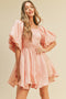 Light Pink Textured Ribbed Short Puff Sleeve Top