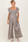 Light Taupe Floral Smocked Lace Trim Wide Leg Maternity Jumpsuit