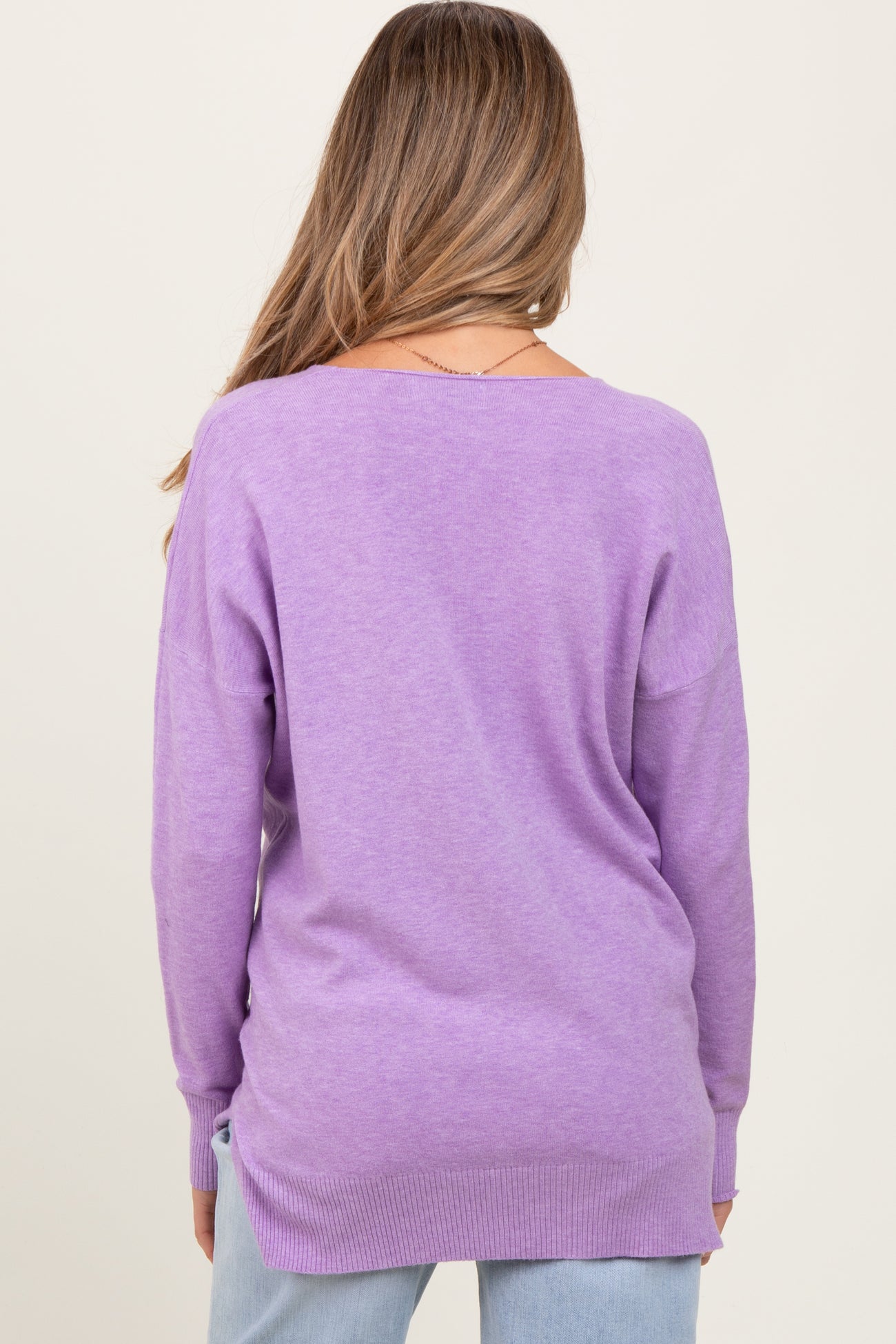 Lilac Front Seam V-Neck Side Slit Maternity Sweater