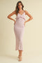 Lime Leaf Print Smocked Waist Long Sleeve Maternity Maxi Dress
