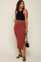 A maternity maxi dress featuring a smocked top with self-tie adjustable ruching, a ruffle hem and a side pockets.