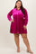 Details A solid velvet plus short dress with a collared neckline and button down front. Content + Care