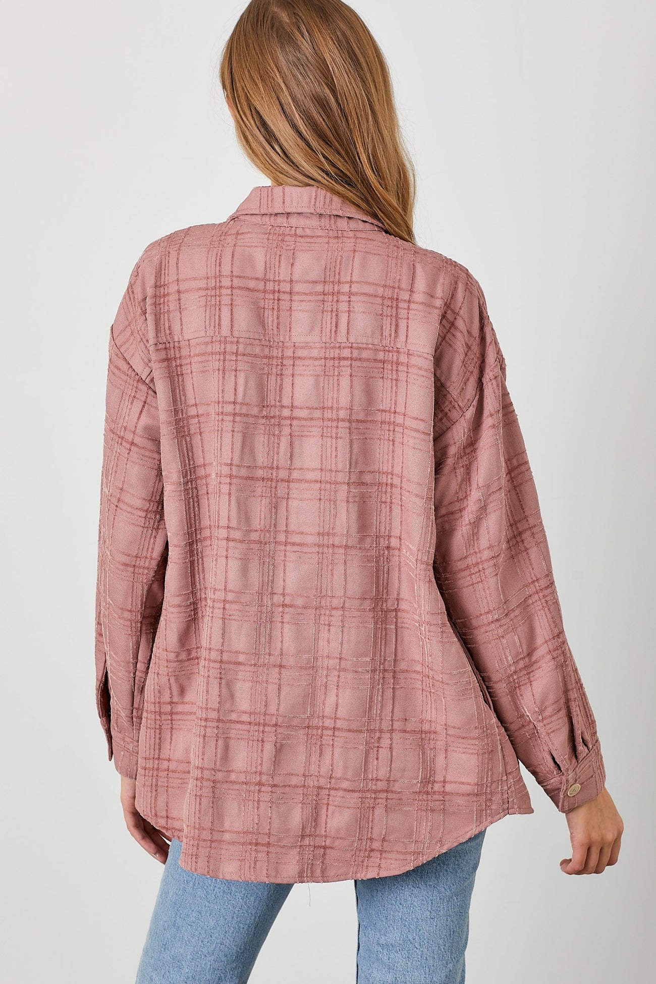 Mauve Plaid Textured Shirt Jacket