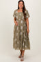 Mocha Botanical Print A Line Tiered Maternity Dress
