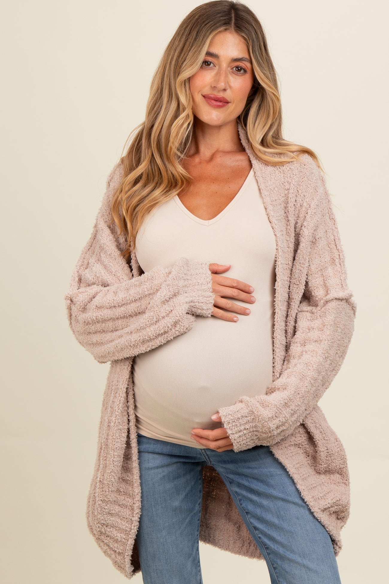 Mocha Chunky Knit Dolman Maternity Cardigan
