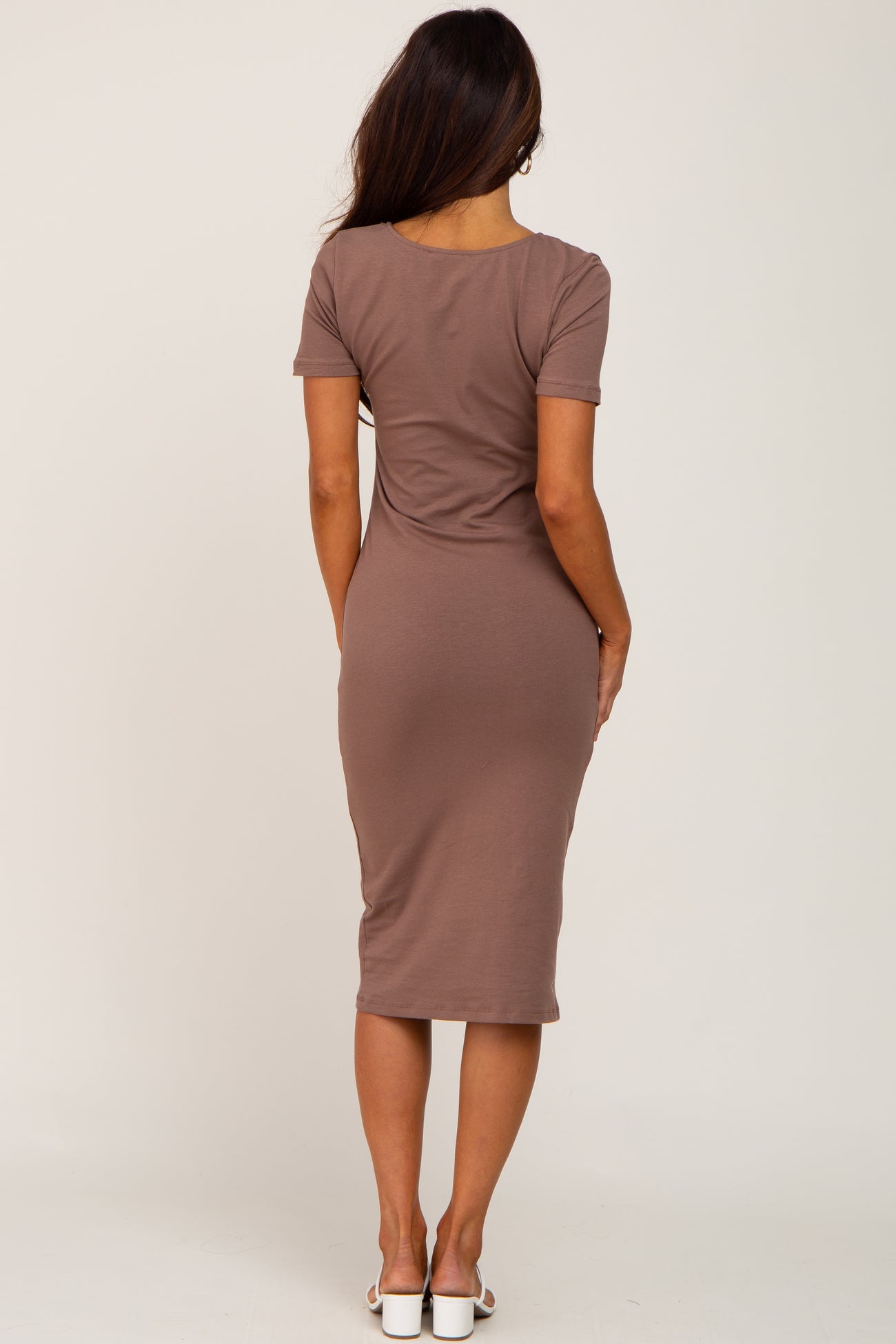 Details A basic fitted midi dress with a rounded neckline and short sleeves. Content + Care