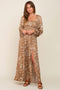 Details A floral print maxi dress with a sweetheart neckline with tie accent, smocked back, bubble sleeves and ruffle hem. Dress is lined. Content + Care