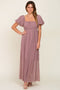 Mocha Square Neck Button Front 3/4 Bell Sleeve Maxi Dress