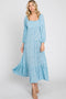 Details A maxi dress featuring a square neckline, a button front, 3/4 bell sleeves, a tiered skirt, side pockets and double lining. Content + Care