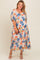 Navy Blue Floral V-Neck Short Puff Sleeve Tiered Maternity Plus Midi Dress