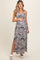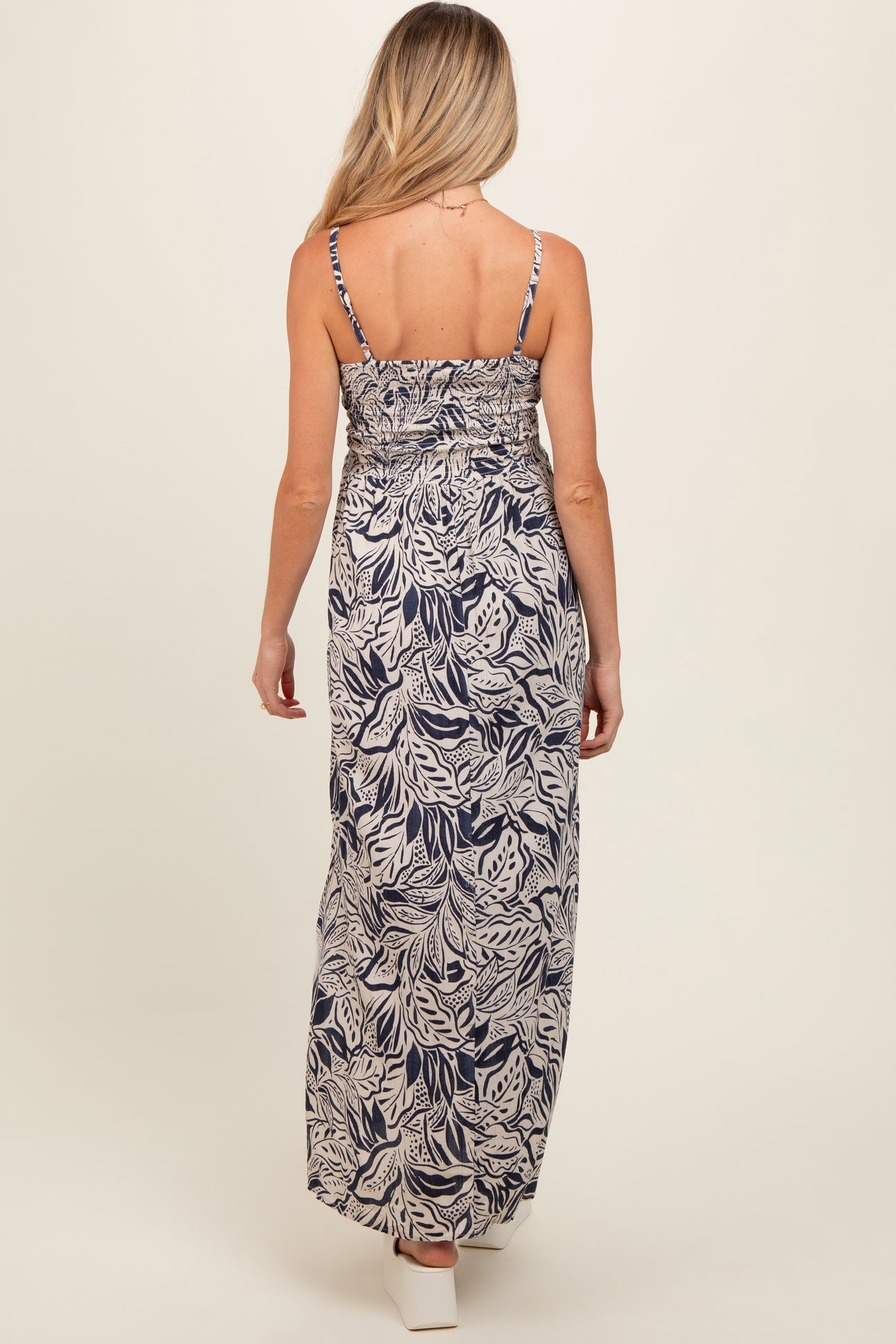 Navy Blue Leaf Print Front Cutout Side Slit Maternity Maxi Dress