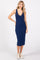 Navy Blue Sleeveless Ribbed Knit Fitted Dress