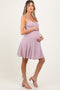 A floral maternity midi skirt featuring a front slit and self-tie adjustable ruching.