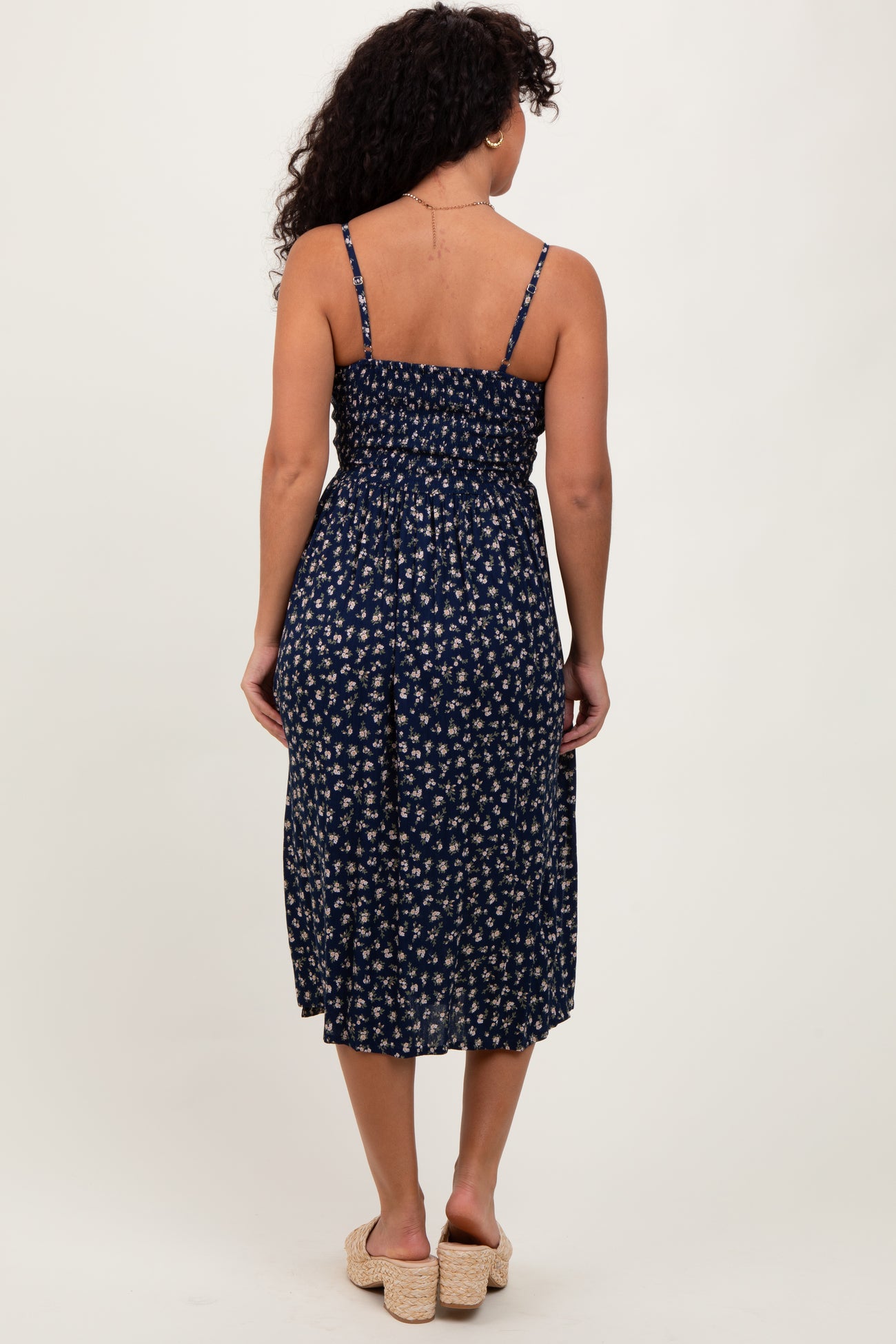 Navy Floral Twist Front Cut Out Midi Dress