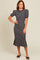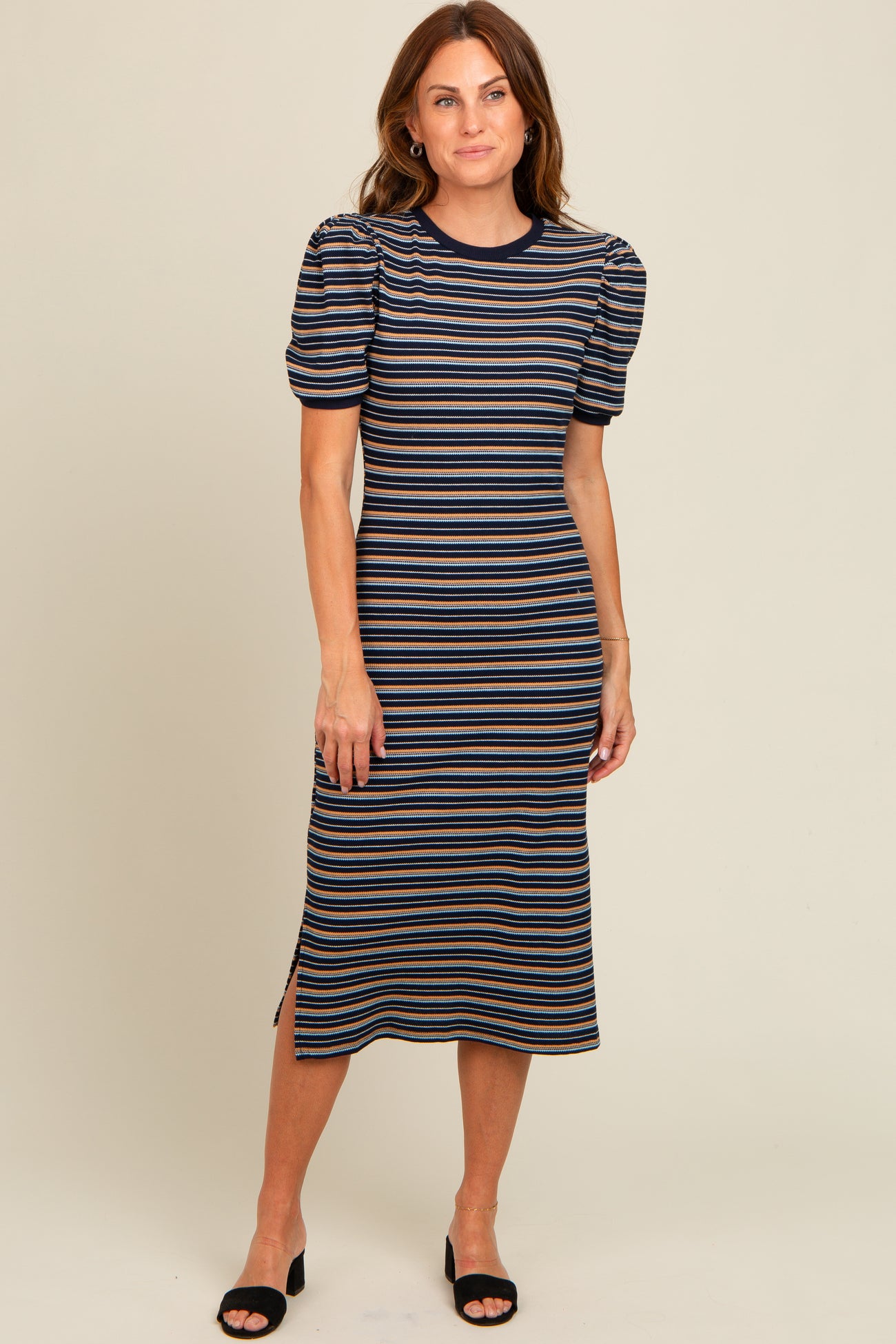 Navy Multi Striped Puff Sleeve Midi Dress