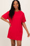 A solid hue short overall featuring adjustable strap ties, a front pocket, side pockets, and a cuffed hem.