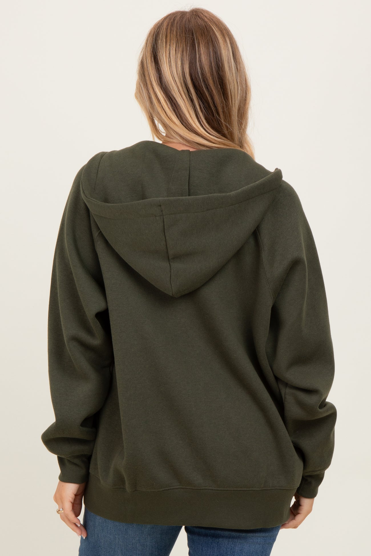 Olive Front Zipper Hooded Sweater