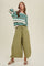 Olive Pleated Elastic Waist Wide Leg Crop Pants