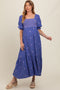 A solid basic ribbed maternity midi dress with adjustable straps.