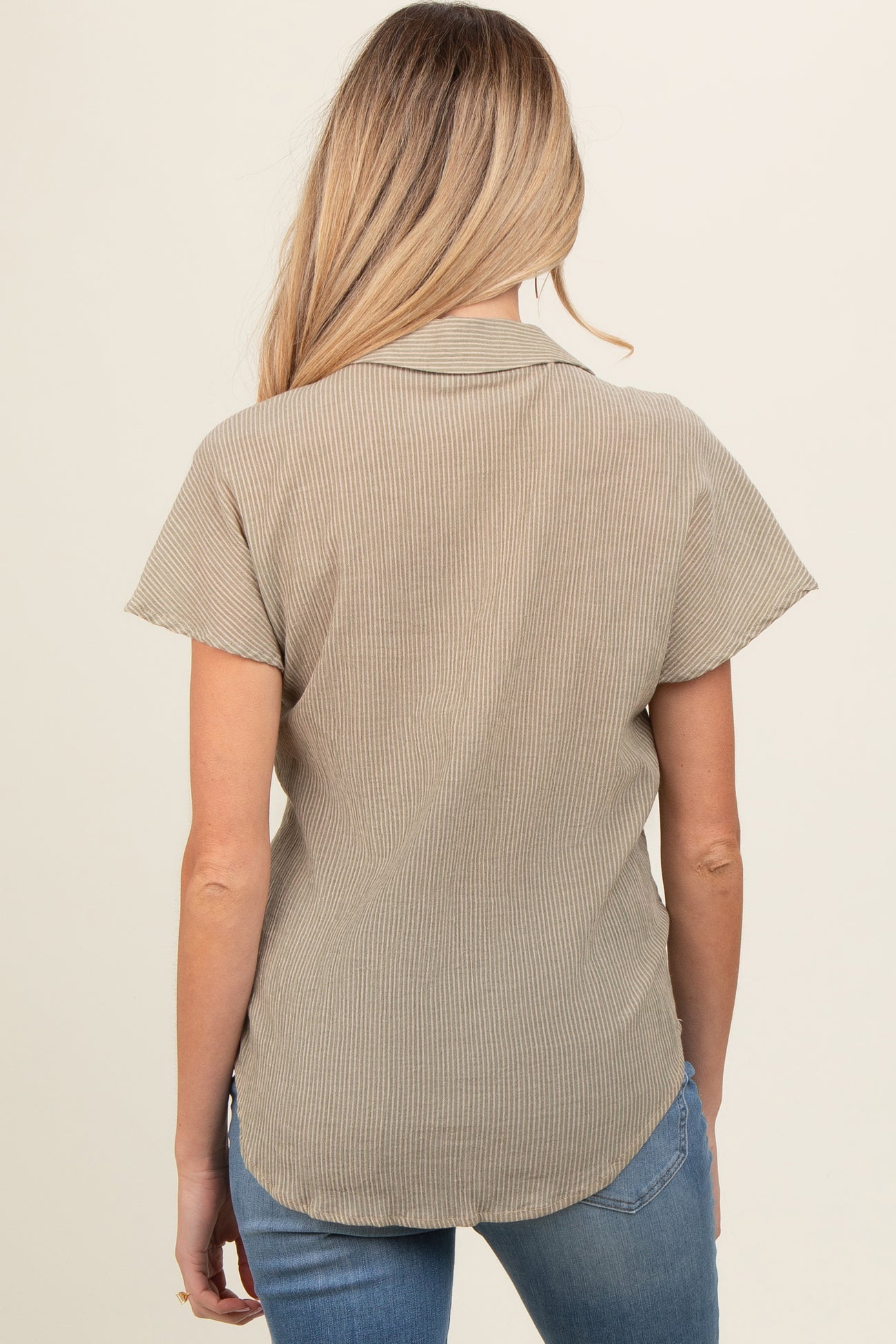 Olive Striped Split V-Neck Dolman Sleeve Maternity Top