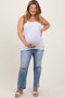 Pink Basic Fleece Crewneck Maternity Sweatshirt