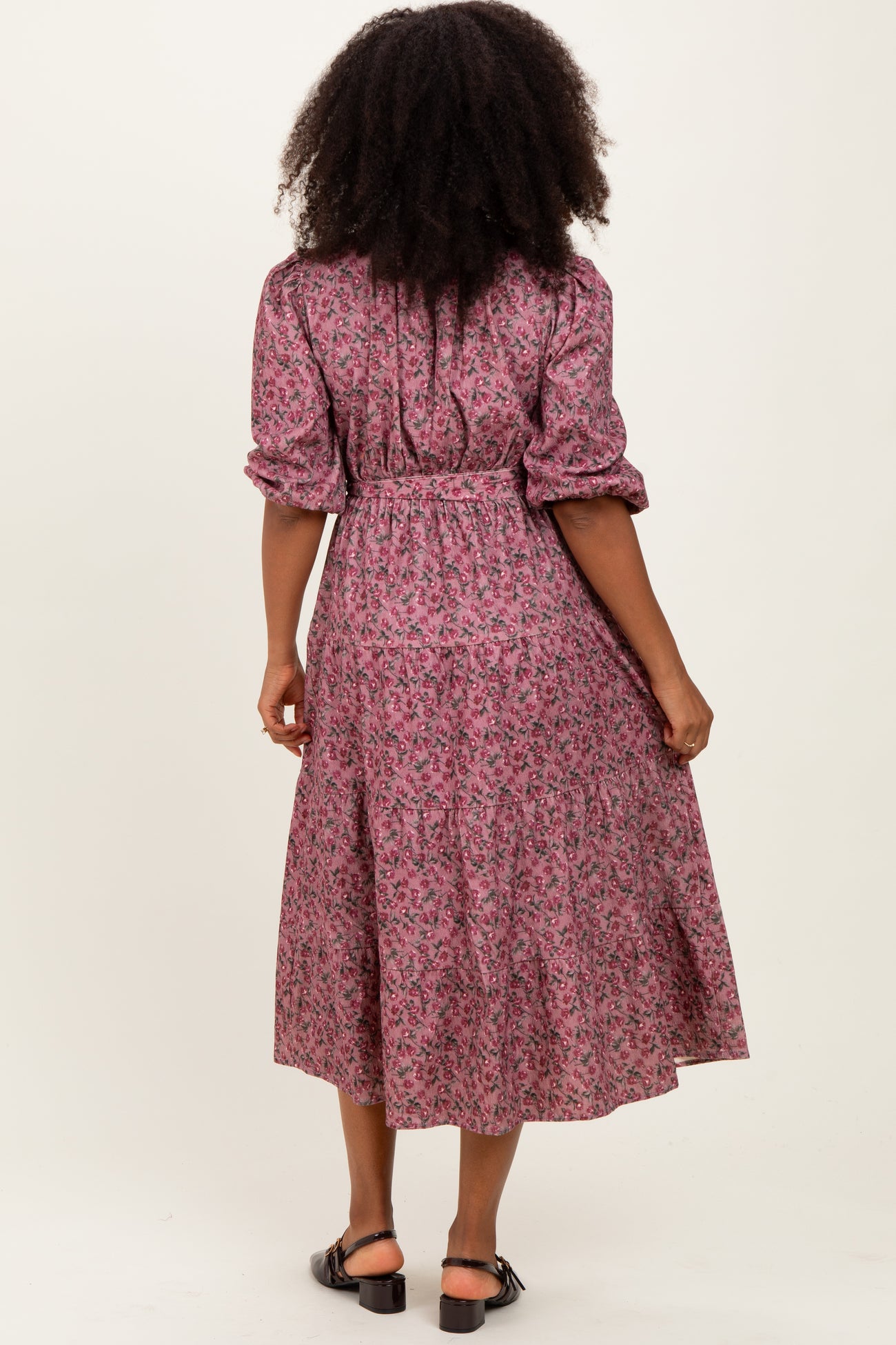 Step into effortless style with our Pink Floral Button Down Front Tie Midi Dress. Featuring a delicate floral print on a soft pink backdrop, this dress combines feminine charm with modern details. The button-down front and adjustable tie waist create a flattering silhouette, while the puffed 3/4 sleeves add a touch of elegance. Crafted from lightweight, breathable fabric, it’s perfect for day-to-night wear. With a midi length that offers versatility and comfort, this dress is ideal for brunch dates, garden parties, or casual outings. Pair with your favorite flats or heels for a chic, timeless look.