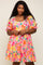 Details A floral chiffon plus size dress with a v-neckline, a smocked top, cinched puff sleeves, and a tiered skirt. body is lined to prevent sheerness. Content + Care