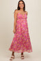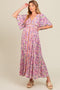 Pink Front Pocket Line Textured Short Sleeve Maternity Dress