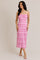 Pink Lace Ruffle Tiered Strapless Midi Dress