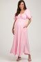 Pink Pleated Tiered Maternity Midi Dress