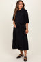 Pink Striped Tiered Raw Hem Maternity Midi Dress