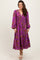 Plum Floral Smocked Waist Long Sleeve Midi Dress