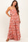 Embrace effortless style and comfort with our Rust Floral Strapless Ruffle Wide Leg Maternity Jumpsuit. Crafted from lightweight, breathable fabric, this jumpsuit features a charming rust and white floral print perfect for any season. The strapless design with a delicate ruffle overlay adds a feminine touch, while the wide-leg silhouette provides ample room for your growing bump and ultimate comfort. Ideal for casual outings or dressier occasions, it pairs perfectly with sandals or heels. Adjustable elastic waist ensures a flattering fit throughout your pregnancy journey. Make this versatile jumpsuit a staple in your maternity wardrobe!