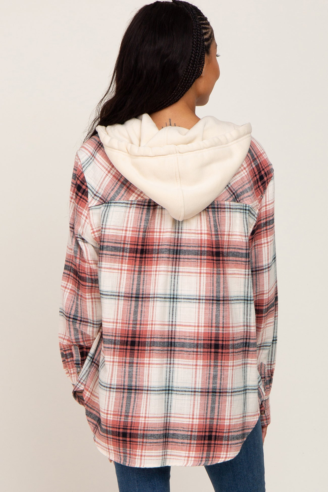 Rust Plaid Hooded Shirt Jacket
