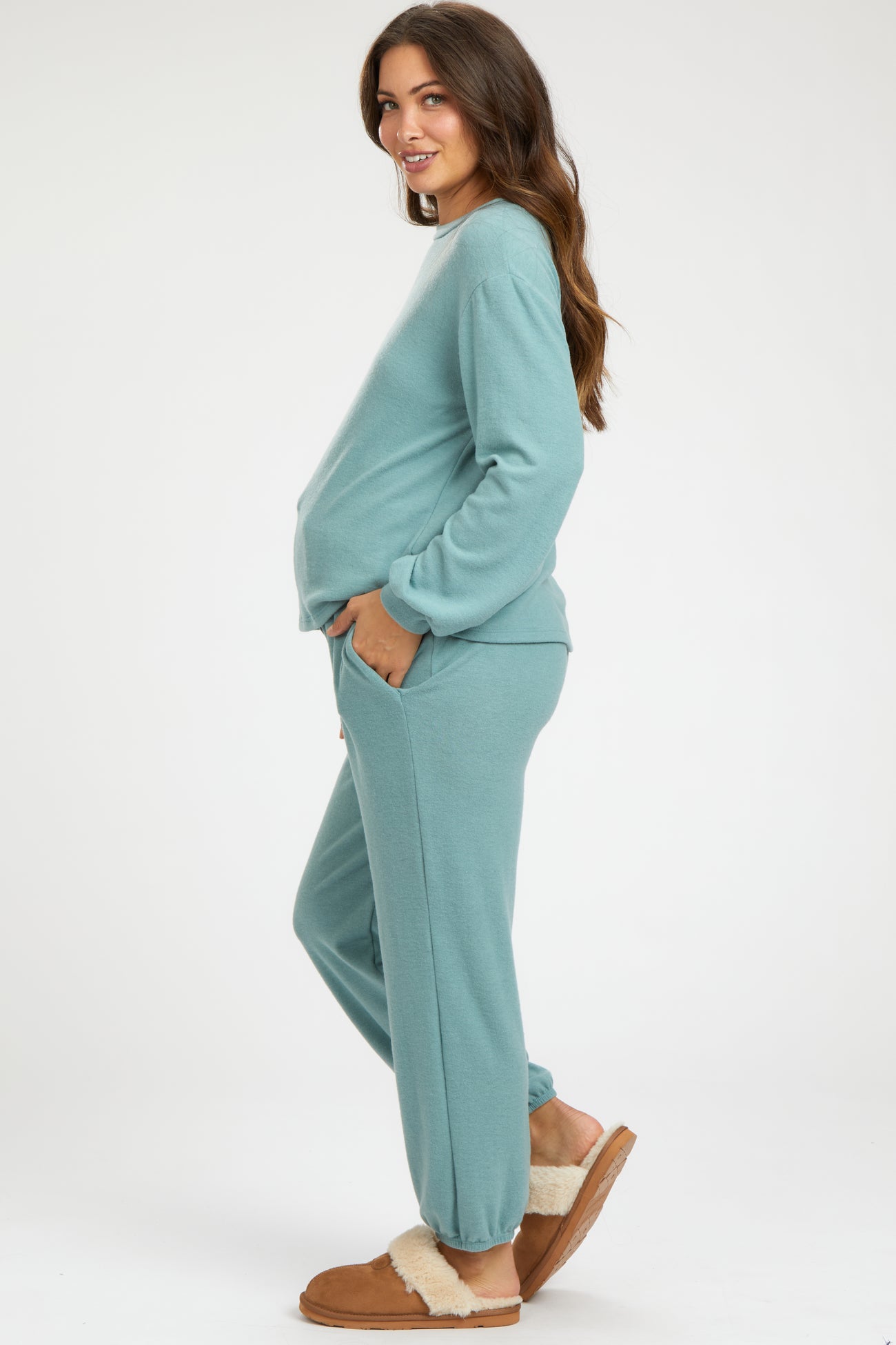 Sage Soft Knit Brushed Long Sleeve Maternity Lounge Set