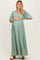 Sage Solid Woven 3/4 Sleeve V-Neck Button Down Maternity Maxi Dress