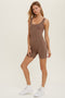 A textured fitted midi dress featuring a one-shoulder neckline, adjustable cami straps and adjustable side ruching.
