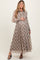 Taupe Floral Chiffon Ruffle Accent Button Down Maternity Maxi Dress
